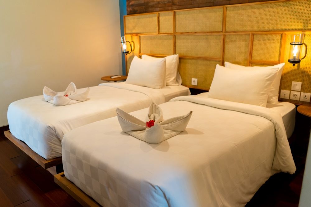 Отель просто чудесный! Очень красивая территория, очень приветливый и добродушный персонал, я влюблена в это место и вернулась бы в Куту только из-за этого отеля! Завтраки разнообразные, много всего: и классических, и азиатских. Tri и Dian замечательные сотрудницы, всегда готовы помочь! И вообще каждый сотрудник этого отеля ВСЕГДА улыбается искренне и старается сделать все, что от него зависит, в лучшем виде! За те деньги, что мы заплатили, лучшего места не найти! Убирались каждый день, но полотенца иногда забывали поменять) Вид из окна был на стену, но это мелочи, так как территория отеля - это что-то потрясающее! Настоящие тропики Бали Музыка вечером играла иногда рядом, но не громко и совсем не допоздна и не мешала, поэтому смело выбирайте этот отель, он чудесный правда.