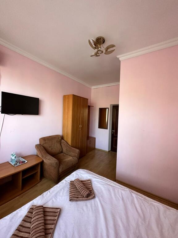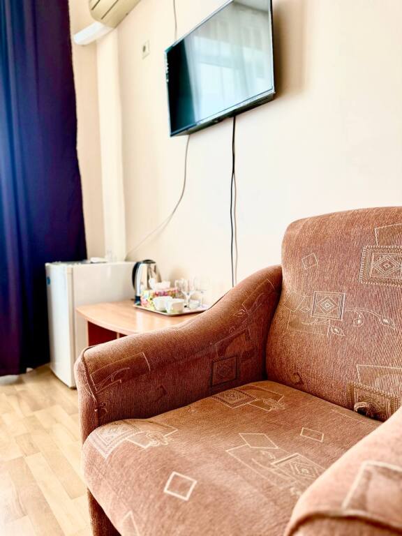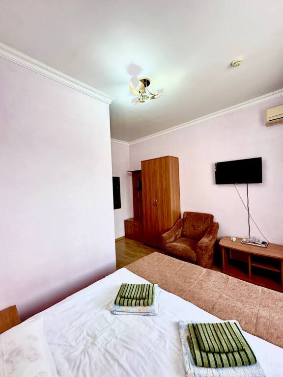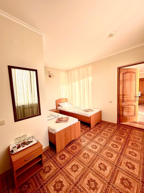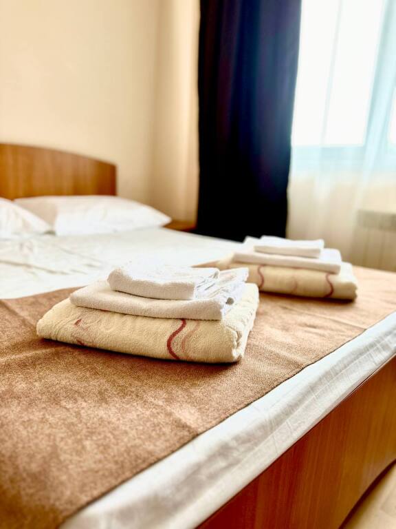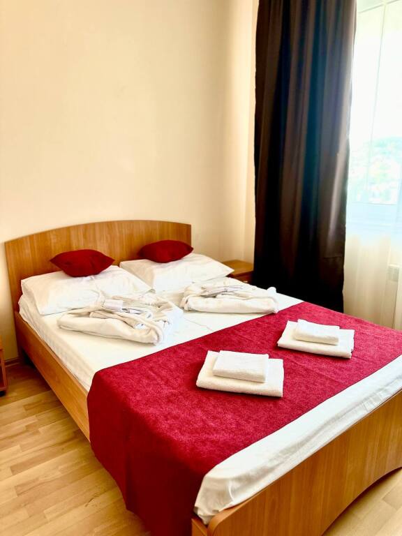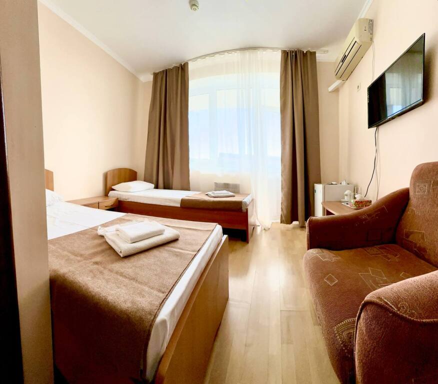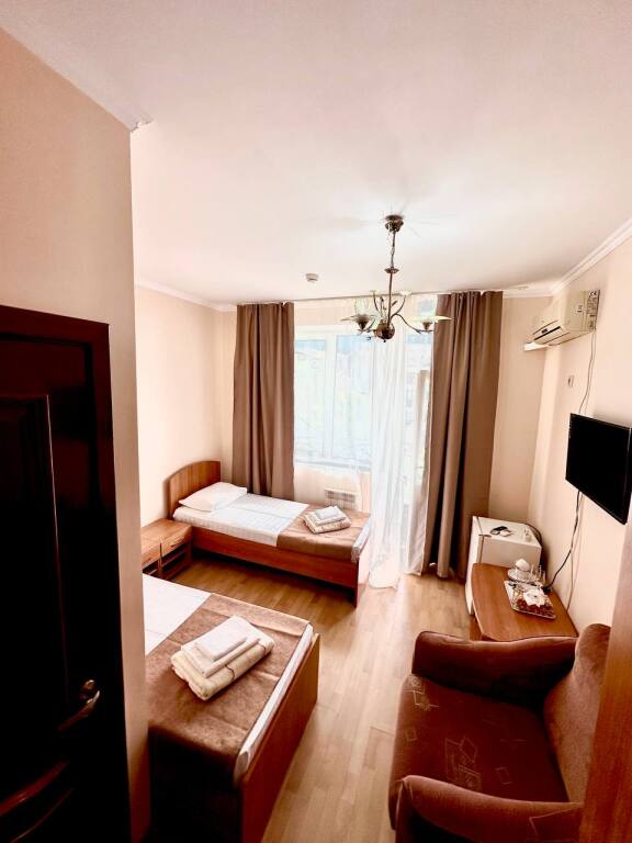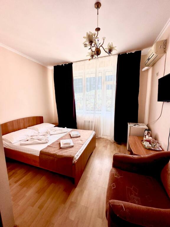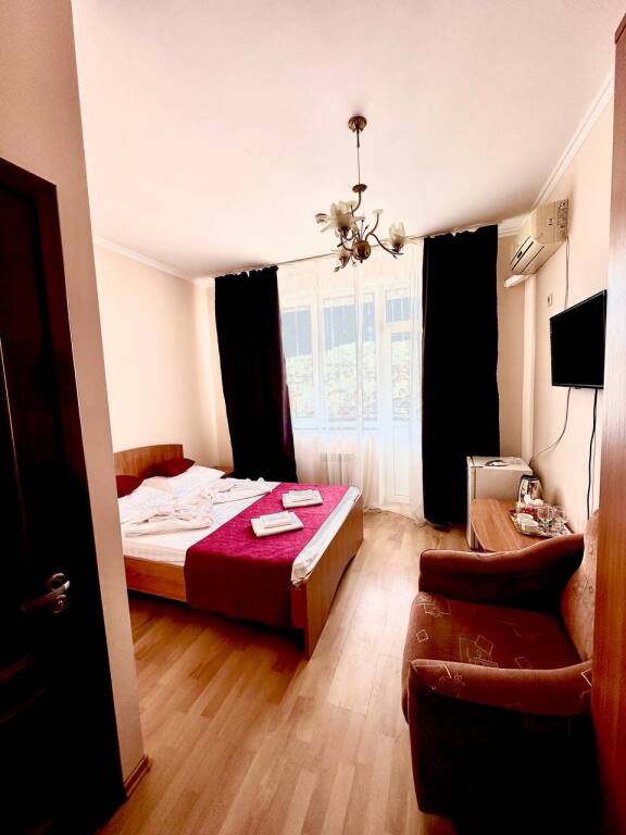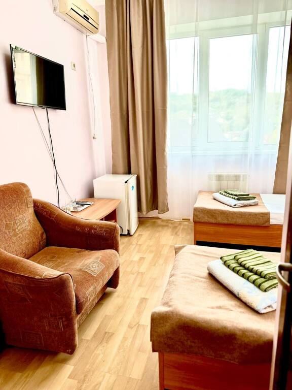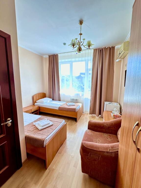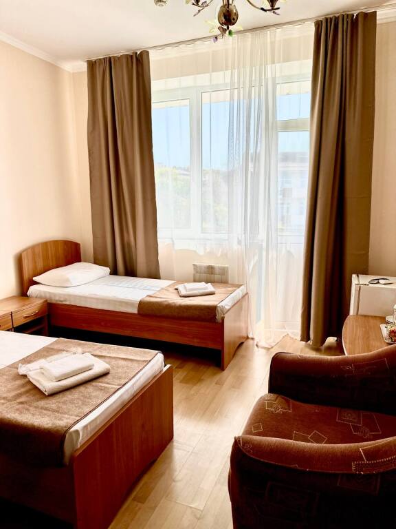 Начну отзыв с того, как мы забронировали номер: Юлия очень подробно описала все возможные варианты на наши даты, отправила фотографии и даже видео номеров, ответила на ВСЕ вопросы ( которых было немало) Спасибо за терпение!) Утвердили отель на ломаной, отправили предоплату - в ответ получили квитанцию Приехали мы на поезде и Юлия лично нас встретила с вокзала. Хозяйка отеля сразу произвела положительное впечатление ) Она же подробно рассказала про территорию отеля и ближайшие места общепита. Хотя у нас в номере была кухню, что является большим плюсом ( мы путешествовали с детьми) Номер был с отличным ремонтом, большим холодильником, телевизором, стабильным интернетом ( было важно для работы) и нам даже положили 4 бутылочки воды и шампунь, полотенца кстати тоже были в номере В отеле есть потрясающая терраса, каждое утро завтракали с видом на море, как-то раз даже видели дельфинов!!! На территории есть мангал, для мужа это было приятной новостью)) До моря мы доходили за 5-6 минут, а обратно чуть дольше так как идти в горку , но, мне кажется, за время отпуска я не поправилась именно из-за нее))) В общем отель с лихвой удовлетворил наши ожидания, большое спасибо Юлии за гостеприимство и Марии (горничная) за обслуживание, все было чудесно! Теперь советуем вас друзьям и в следующем году обязательно вернемся !
