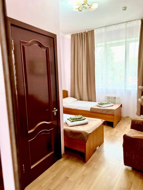 Отель вызывает приятные впечатления только по фотографиям. Комнаты сырые и холодные. Матрасы продавленные. В туалете запах канализации. Постельное белье заношенное, полотенца, такое ощущение, что с бабушкиных сундуков - старые, застиранные. Но самое неприятное - это хозяева. Вечерами пьют алкоголь и курят прямо в общей гостиннной. Смеются так, что слышит весь отель. Очень странное отношение к гостям. Не рекомендую, даже за маленькую стоимость номеров. После проживания стало понятно, почему такие низкие цены.