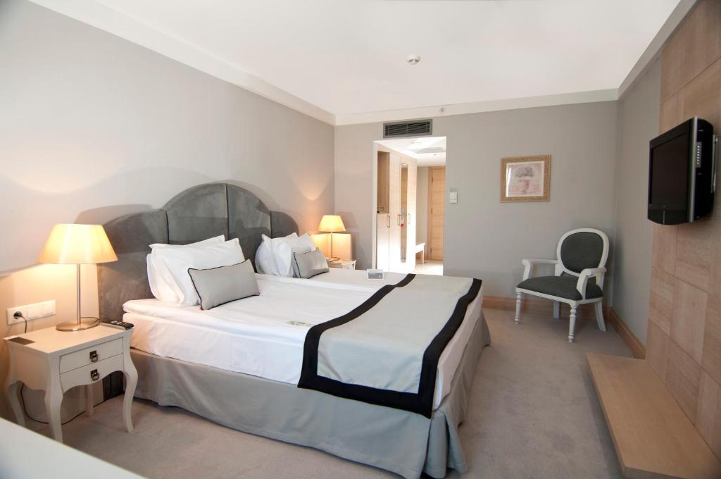 Эстетически обоснованная конструкция с рядом бассейнов и зеленью, которые обрамляют ее. Вид на залив, который, однако, очень далек, от которого можно полюбоваться закатом. Что касается завтрака, то я ожидал немного большего там, где, например, отсутствуют местные десерты и некоторые блюда интернационального завтрака. Номер был хорошо меблированным и чистым, хотя небольшой, учитывая цену, заплаченную. Очень доброжелательный, полезный персонал, также источник ценной информации и предложений. Отдельное спасибо Ондеру и Ниджату, ребятам на приеме.